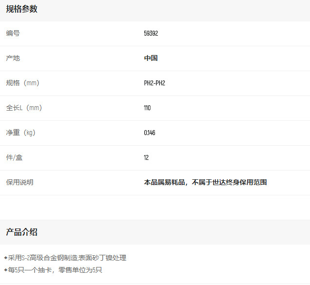產(chǎn)品名字:世達(dá)6.3mm系列65mm長十字旋具頭PH2-PH2