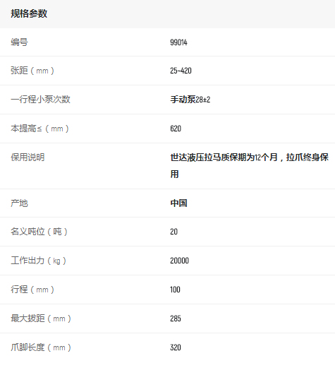 產(chǎn)品名字:世達(dá)分體式液壓拉馬20噸