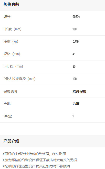 產(chǎn)品名字:世達(dá)2爪拉馬4寸